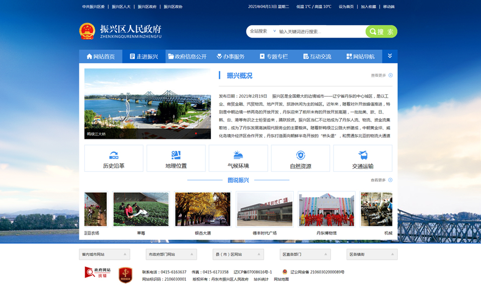 振興區(qū)是全國(guó)最大的邊境城市——遼寧省丹東的中心城區(qū),是以工業(yè)、商貿(mào)金融、汽貿(mào)物流、地產(chǎn)開發(fā)、旅游休閑為主的城區(qū)。近年來(lái),隨著對(duì)外開放峰值推進(jìn),特別是中朝邊境一橋兩島的開放開發(fā),丹東迎來(lái)了前所未有的開放開發(fā)高潮,一批批美、歐、日、韓、臺(tái)、港等有識(shí)之士紛至沓來(lái),踴躍投資。振興區(qū)當(dāng)仁不讓地成為了丹東人流、物流、資金流集散地,成為了丹東發(fā)展高端現(xiàn)代服務(wù)業(yè)的主要載體。隨著新鴨綠江公路大橋建成,中朝黃金坪、威化島境外經(jīng)濟(jì)區(qū)合作開發(fā),丹東打造面向朝鮮半島開放的“橋頭堡”,和貫通東北亞的物流大通道戰(zhàn)略的全面實(shí)施,振興區(qū)成為了遼寧對(duì)外開放新高地。