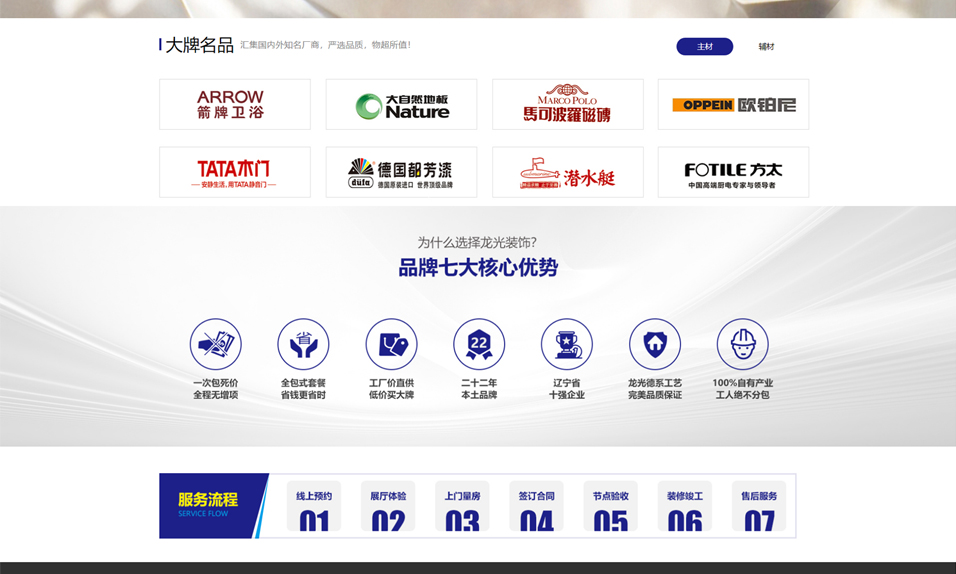 丹東龍光裝飾工程有限公司是丹東裝飾行業(yè)一個(gè)名冠江城的家裝企業(yè)!龍光裝飾是丹東裝飾行業(yè)一塊響當(dāng)當(dāng)?shù)慕鹱终信?!丹東龍光裝飾工程有限公司成立于1997年,注冊(cè)資金1100萬(wàn)元,是國(guó)家建筑裝飾裝修貳級(jí)資質(zhì)企業(yè),遼寧省裝飾行業(yè)十強(qiáng)企業(yè),丹東家居建材行業(yè)協(xié)會(huì)副會(huì)長(zhǎng)單位、丹東美術(shù)家協(xié)會(huì)藝術(shù)與設(shè)計(jì)專業(yè)委員會(huì)理事單位、先后被評(píng)為評(píng)為遼寧省最佳誠(chéng)信裝飾公司、丹東消費(fèi)者首選品牌、影響丹東民生的責(zé)任企業(yè)、丹東地區(qū)行業(yè)最具影響力品牌、誠(chéng)信聯(lián)盟單位、誠(chéng)信示范單位等。公司旗下設(shè)有家裝公司、精工裝公司及原創(chuàng)大宅設(shè)計(jì)工作室。