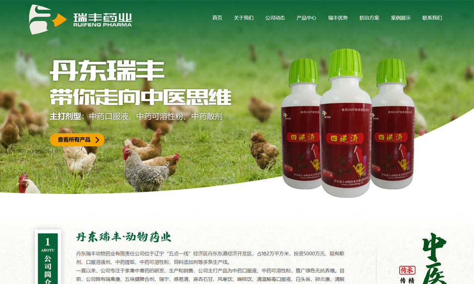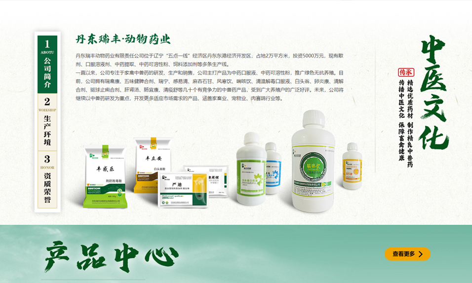 丹東瑞豐動物藥業(yè)有限責任公司位于遼寧“五點一線”經(jīng)濟區(qū)丹東東港經(jīng)濟開發(fā)區(qū),占地2萬平方米,投資5000萬元,現(xiàn)有散劑、口服溶液劑、中藥提取、中藥可溶性粉、飼料添加劑等多條生產(chǎn)線。